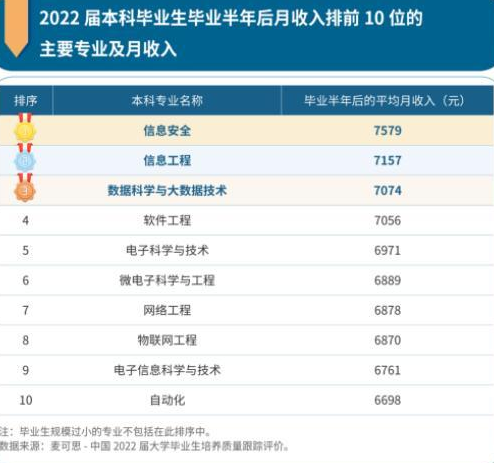 本科毕业生10大高薪专业出炉 数据科学与大数据技术月收入7074元